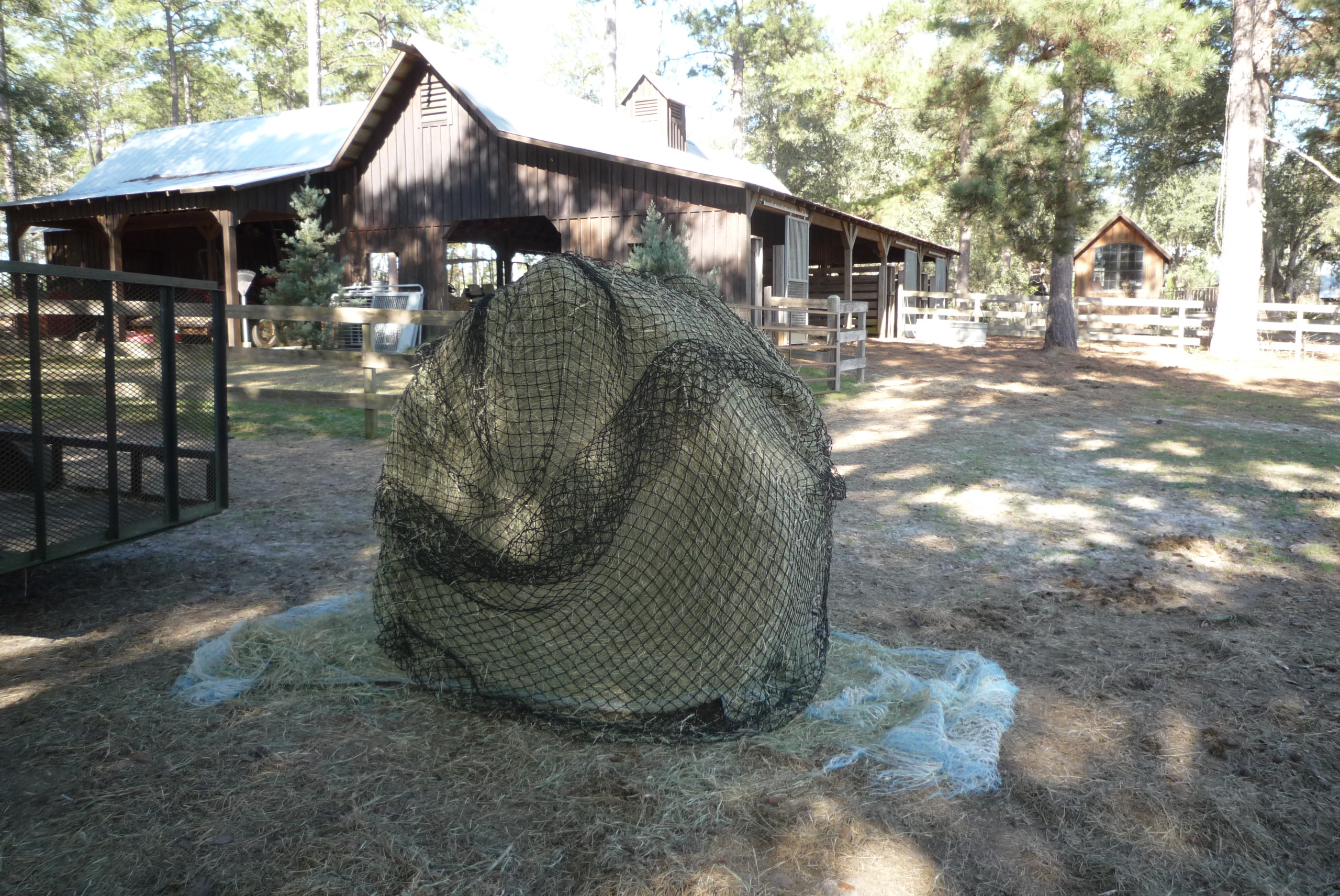 Traditionally, we fed our boys (all our horses are geldings) square bale hay. Of course, this meant one of us had to make a run to the barn at least twice a day, sometimes more. Now, there is nothing wrong with strolling out to the barn, other than it does start to consume a day away.