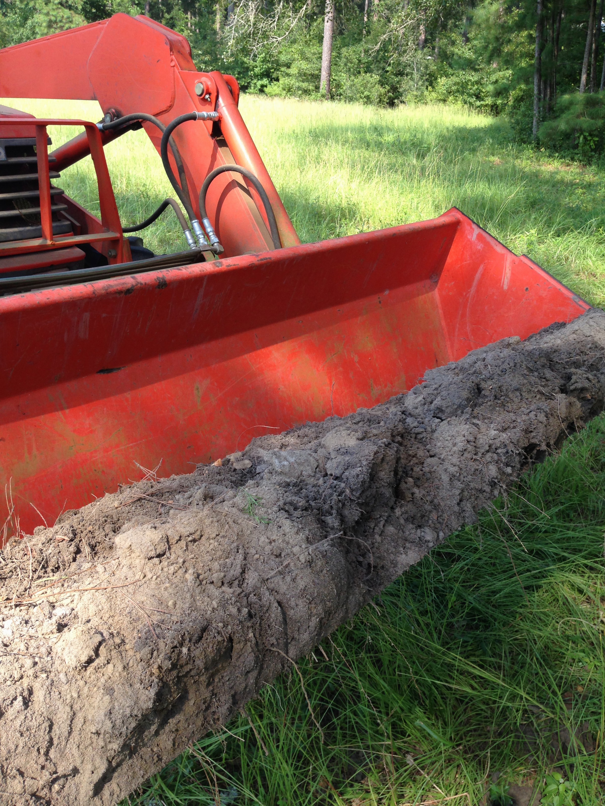 Bear with me, just a few more comments. The whole job would have been easier with a backhoe, instead of the front-end loader, but I am too cheap to buy one, and have no place to store it if I did own one. It is amazing how tight a barn stall can get, especially when you’re on top of a tractor. Things might have been easier if I had taken off the mower deck, too lazy, too hot, too bothered…